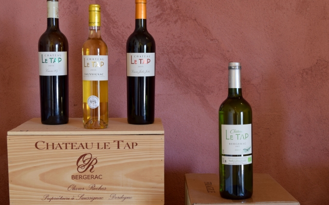 Au cœur du Périgord Pourpre, le Château Le Tap produit des vins blancs, rouges et liquoreux. Comme, cette propriété est construite sur de la pierre blanche, les registres napoléoniens l’ont baptisé « Tas de Pierre ». Au fil du temps, le diminutif « Le Tap » restera dans le langage courant. Mireille et Olivier Roches travaillent en bio depuis 2007. Issus d’une famille de vignerons, ils veillent au respect du délicat équilibre de leur terroir.